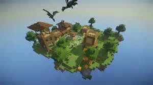 You, your team and the 3 other teams are stuck on an island under siege by dragons! The dragons constantly swoop through the land, smashing through terrain and knocking players off of the map. Some maps, for instance, Ocean Village, have water as potential death points. Death from water is not instant, for it takes hearts away until you die, making it possible to escape from the water. Maps such as Sky Village have the Void. Once a player hits the Void they will die instantly, making it harder to escape. You can either die by landing in the water, falling in the Void, or from fall damage. Avoid sparklers (which look like yellow fireworks) as the dragons are attracted to these. Arrows will cause the dragons to veer off their course when hit. Every second a player is alive is counted at the team's survive time.