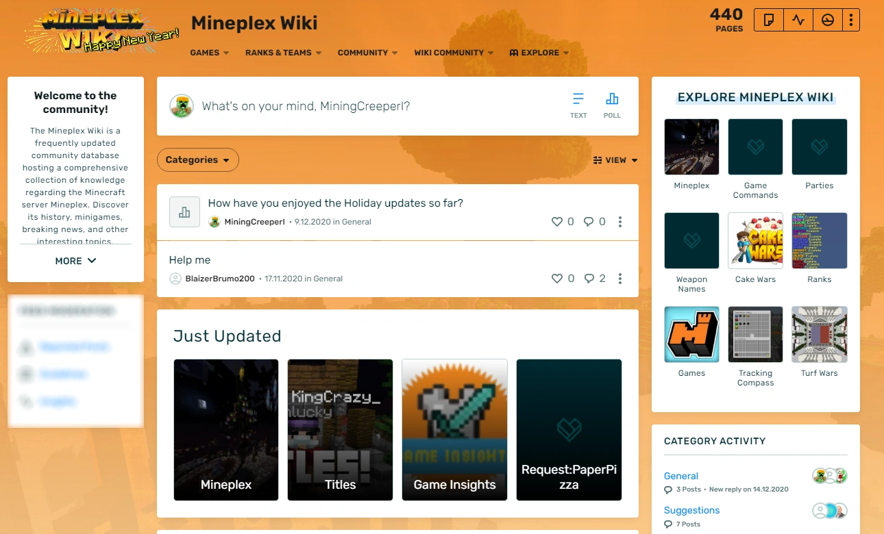 Most importantly, the Mineplex Wiki completed its move to the new Discussions feature. Over at https://mineplex.fandom.com/f, you are now able to talk about whatever your heart desires. The staff team has decided to maintain its community policy for this feature as well, meaning that you will be able to talk freely about anything related to Mineplex, as long as common sense is respected.
